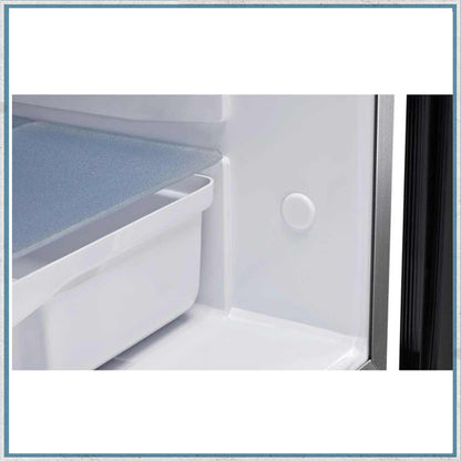 This model boasts a sturdy door and multiple storage options, including a freezer compartment, adjustable shelves, and a salad crisper tray. Keep your food fresh and organized on the go with this versatile and reliable fridge freezer.