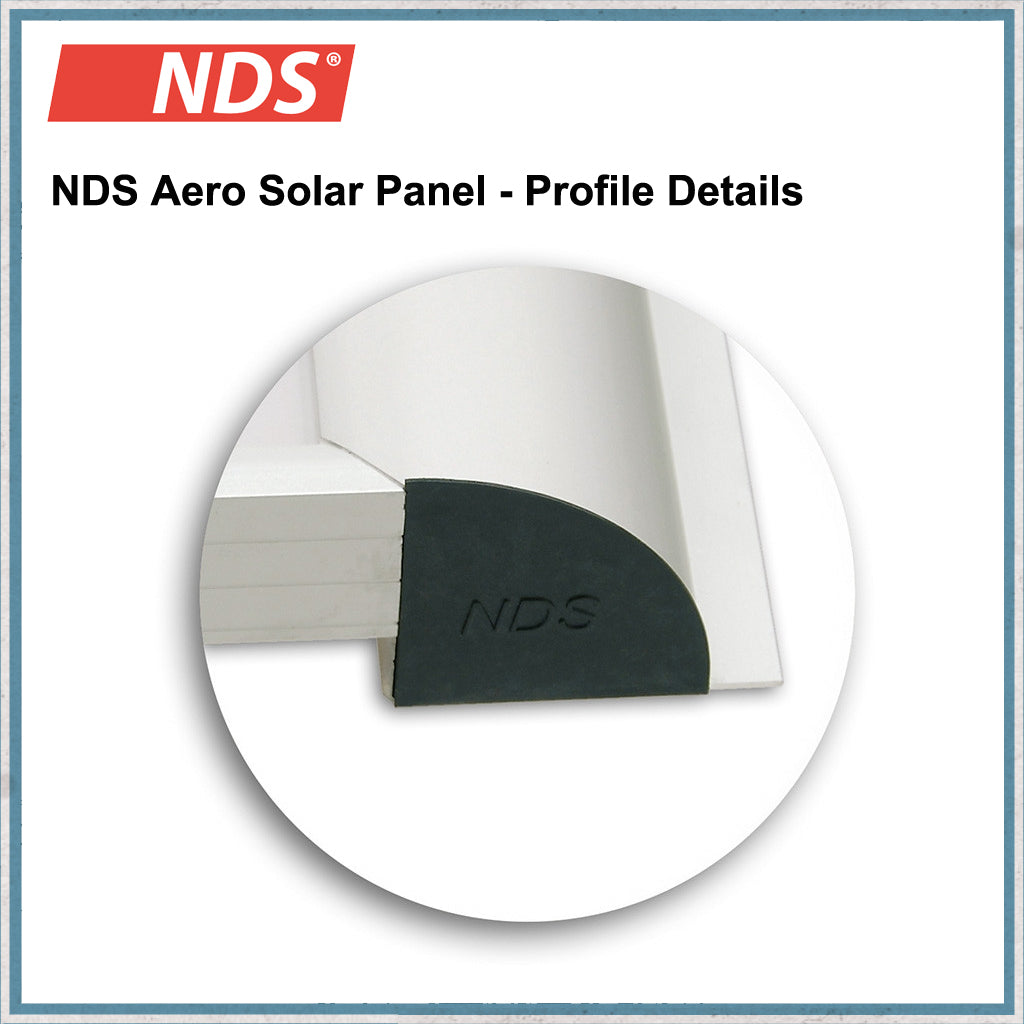 NDS AERO solar panels have aerodynamic front and rear frame rails, They're made to very high standards for NDS in Italy using the latest Grade “A” monocrystalline cells for maximum efficiency and reliability.