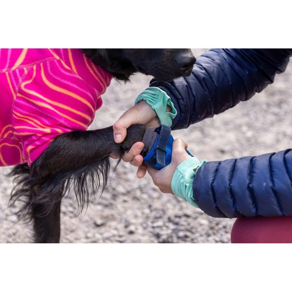 Equipped with a specially designed knit upper, these shoes ensure breathability and coziness while effectively keeping dirt and debris from trails away. The hook-and-loop closure is thoughtfully crafted to open wide for effortless fitting and then securely fasten around the narrowest part of a dog's leg, ensuring a snug and secure fit.