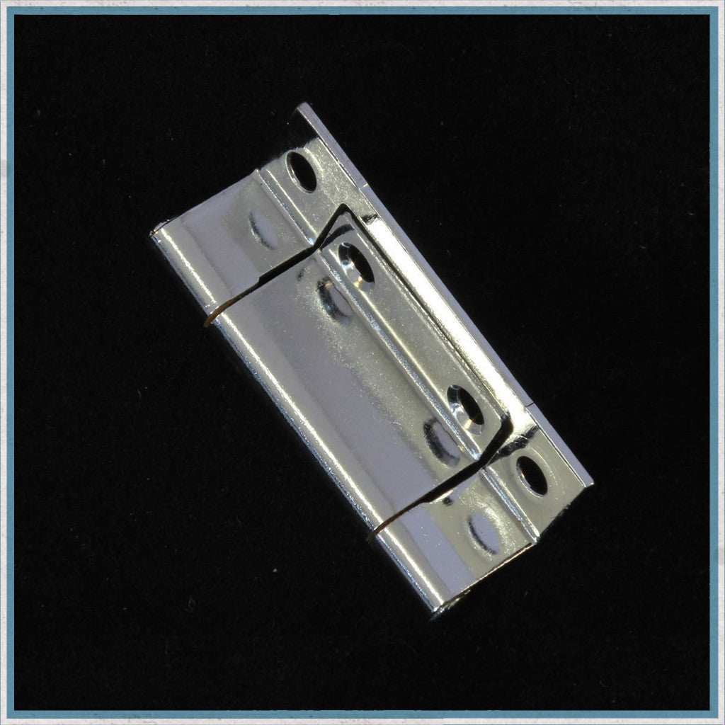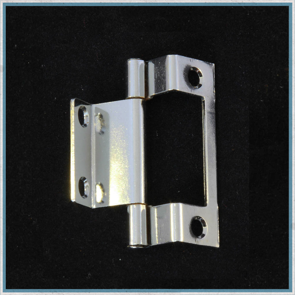 A twin cranked chrome plated, 50mm high x 15mm x 15mm, for a surface mounted cupboard door.