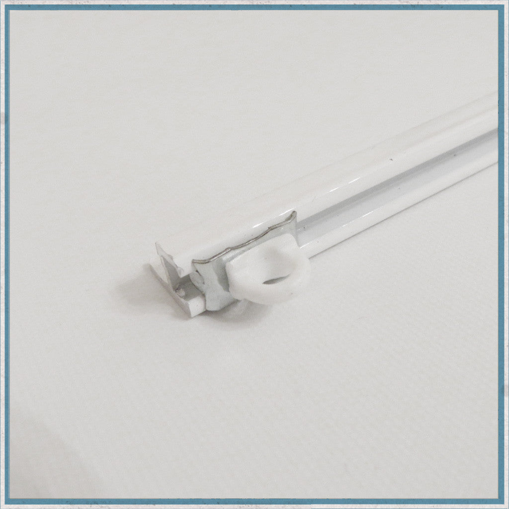 White campervan curtain rail kit, with glides, hooks, screws & twist end stops